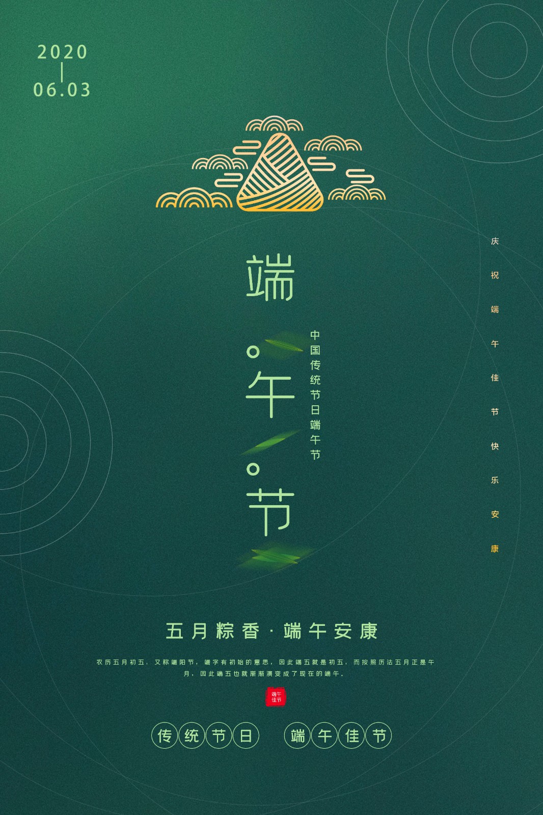 端午節,又稱端陽節、龍舟節、重五節、天中節等,是集拜神祭祖、祈福辟邪、歡慶娛樂和飲食為一體的民俗大節。端午節源于自然天象崇拜,由上古時代祭龍演變而來。